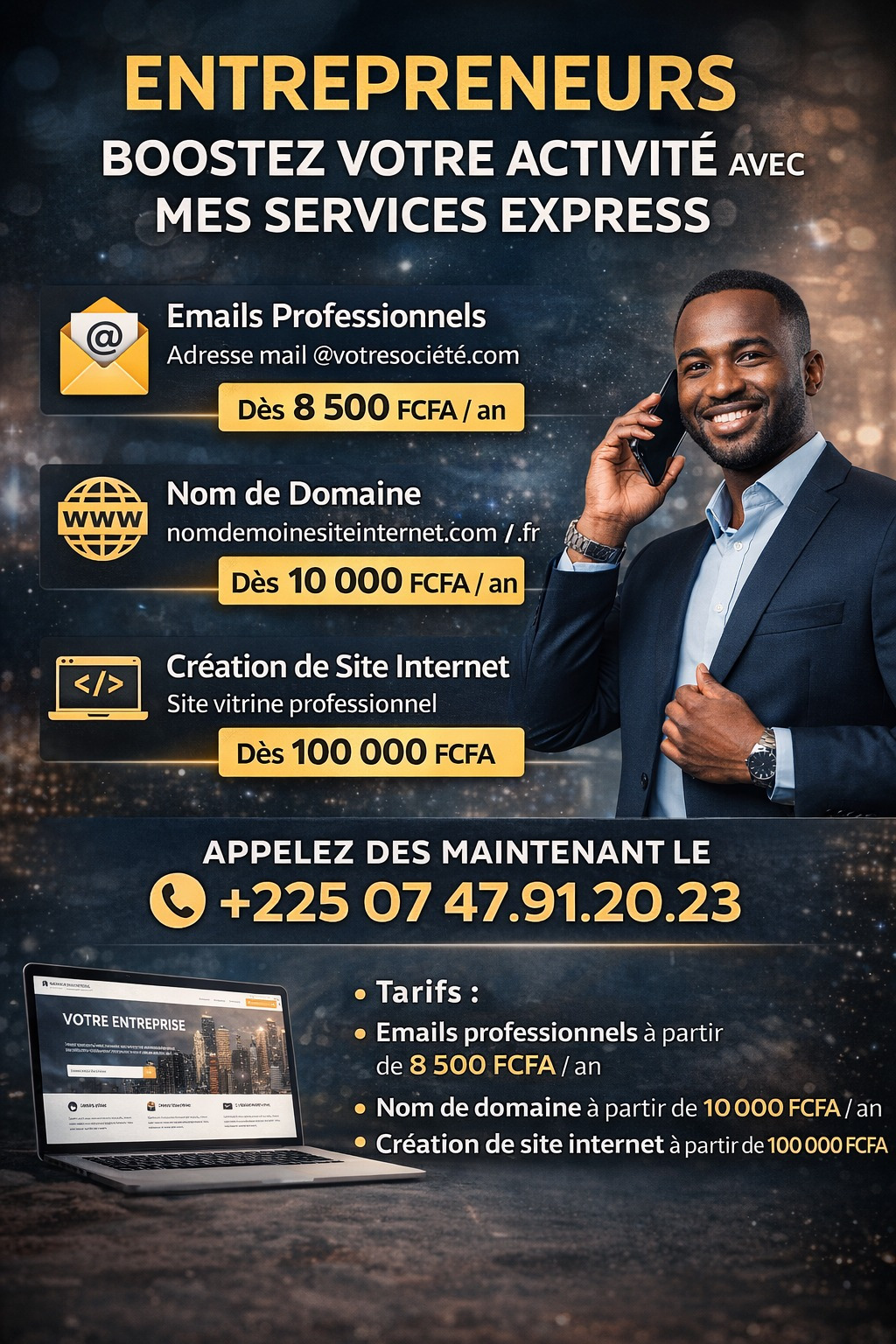 8500 FCFA/AN Pour 10Giga de Stockage + Nom de domaine offert.